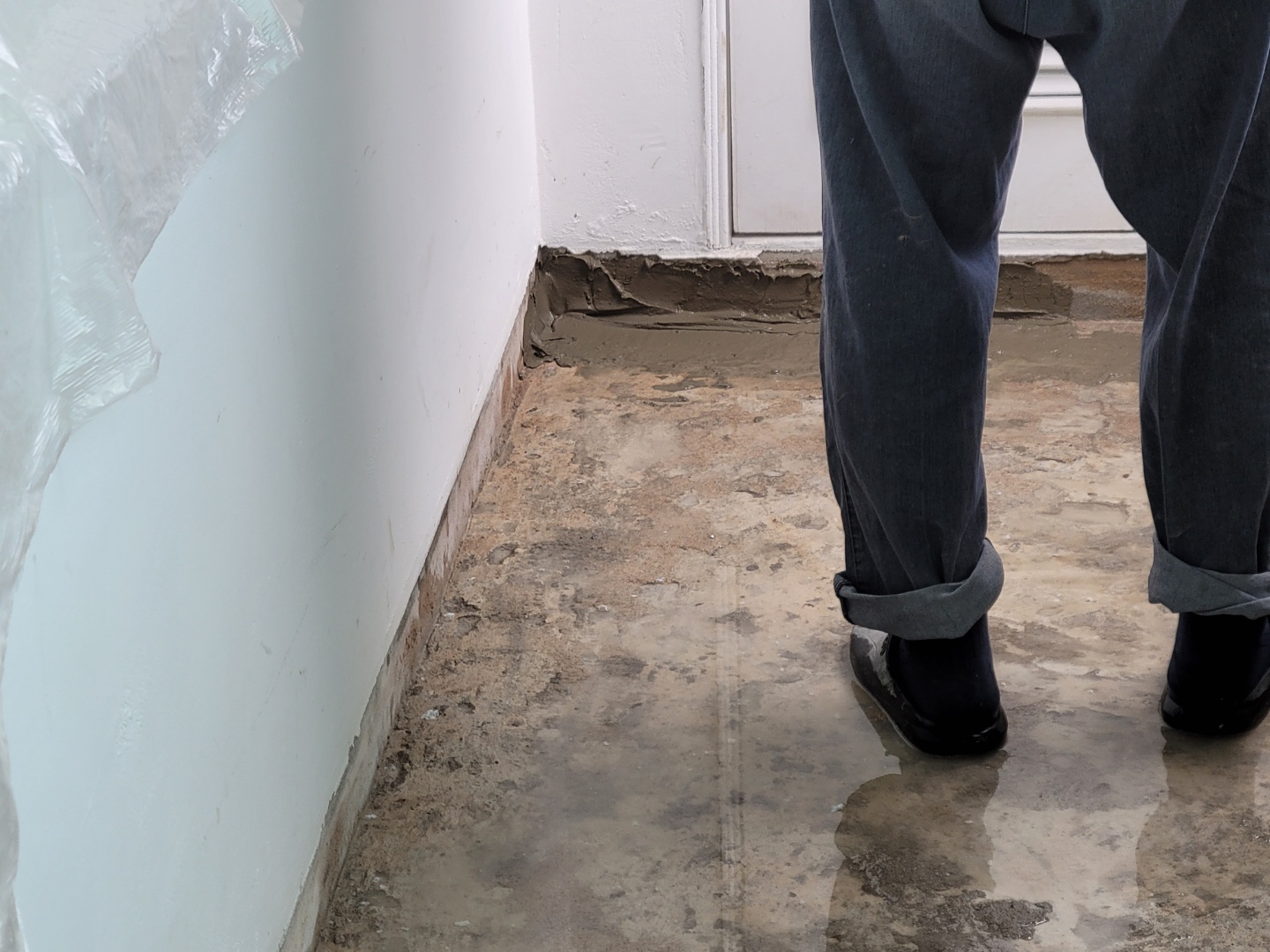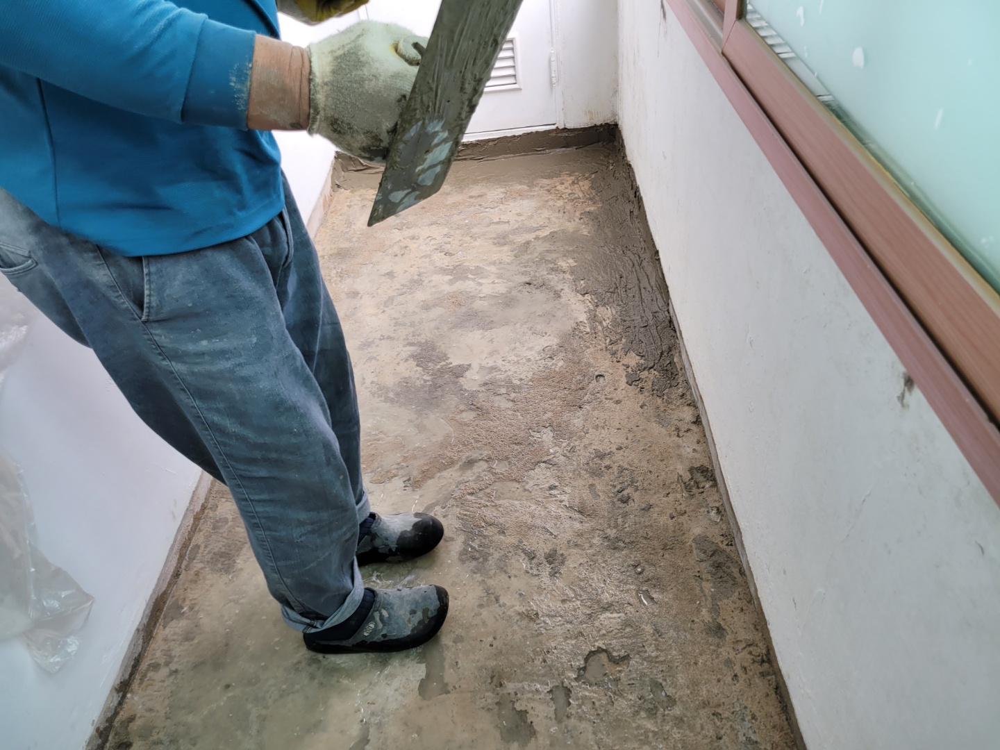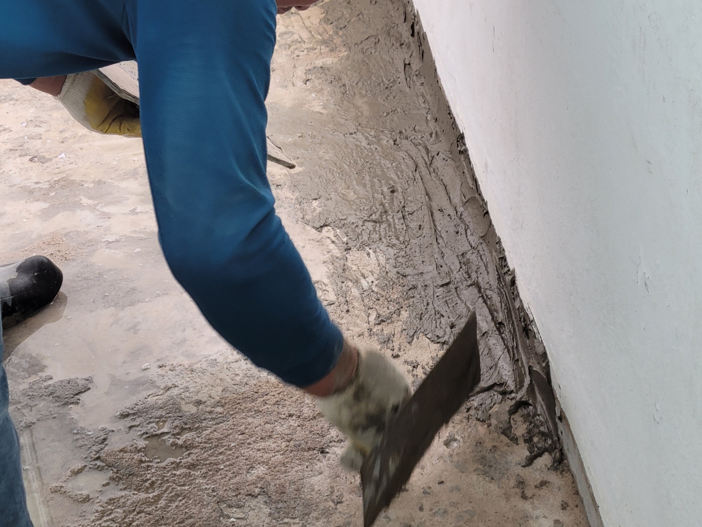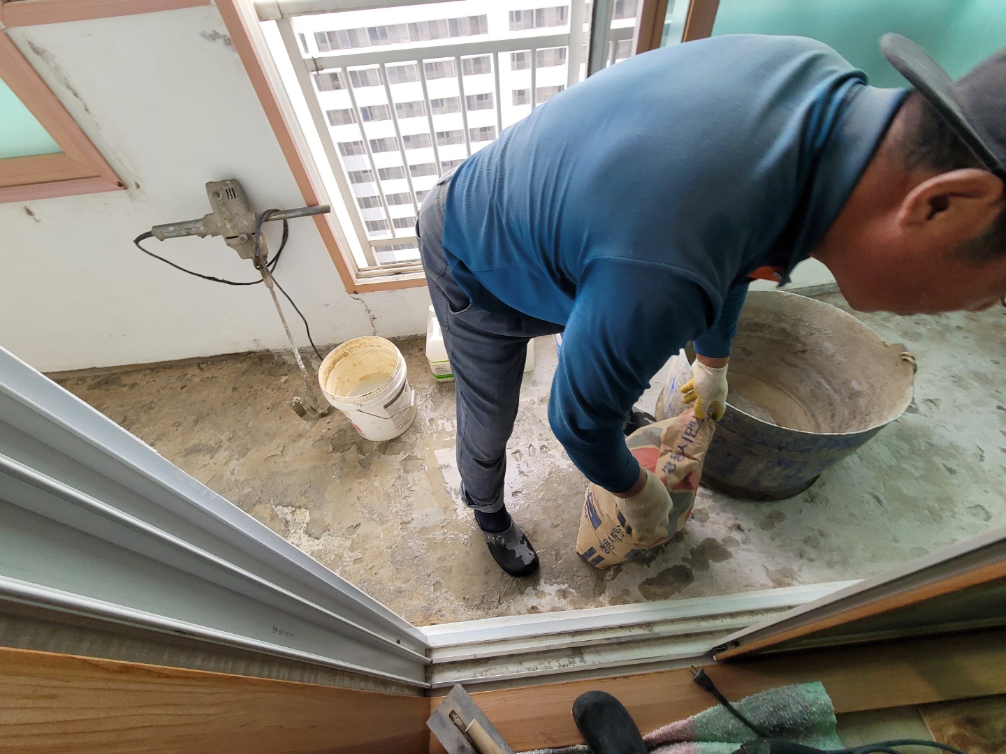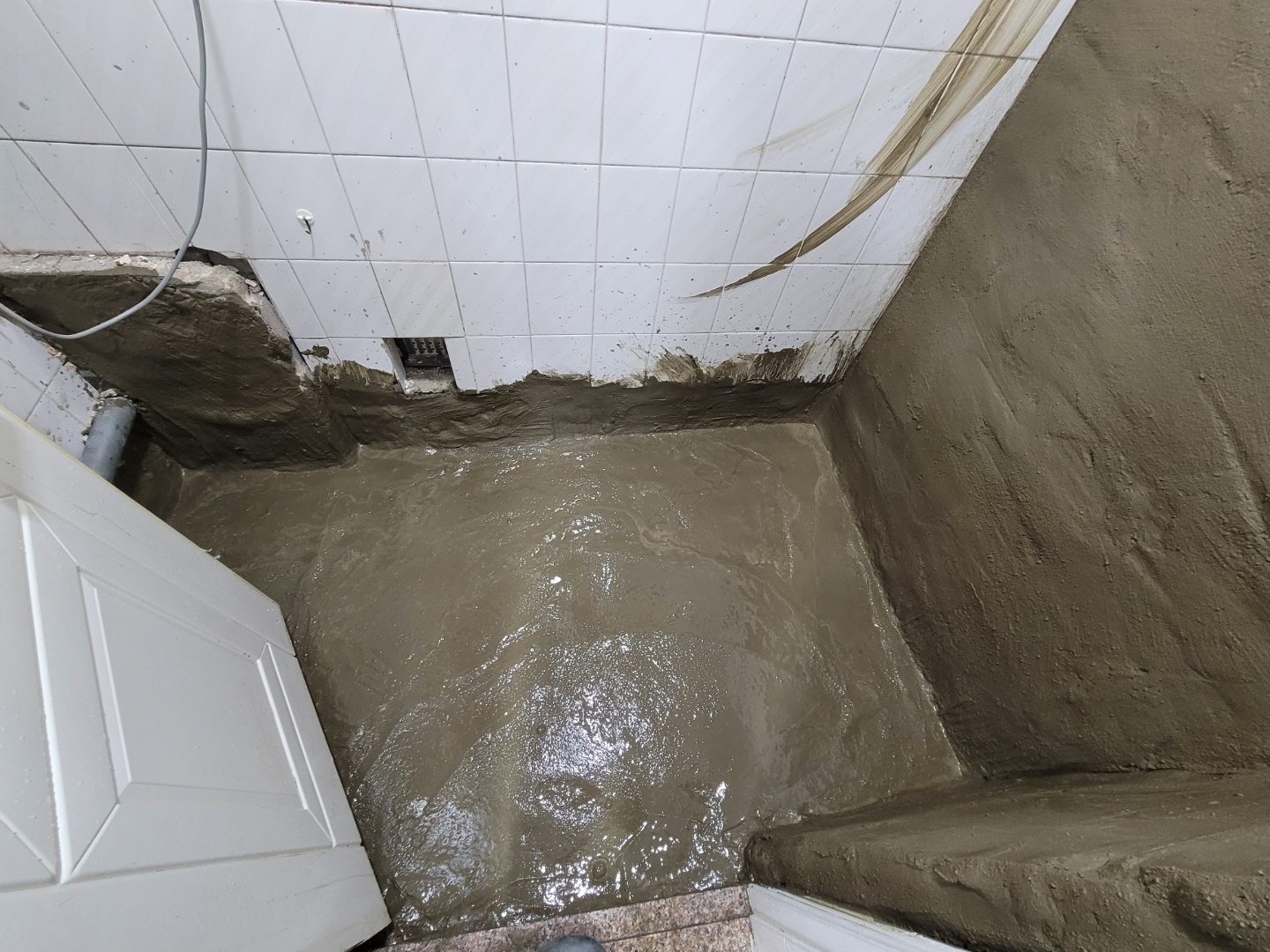 이제 타일 아래쪽 방수처리를 위해서 시멘트작업을 하시는듯 하네요...
