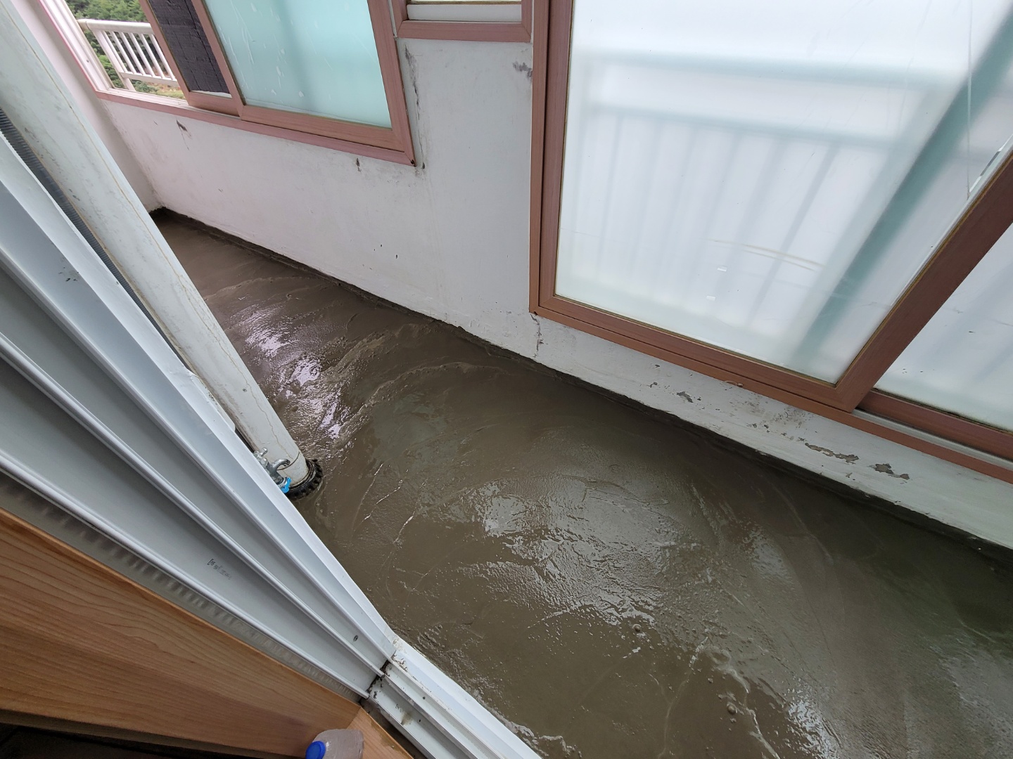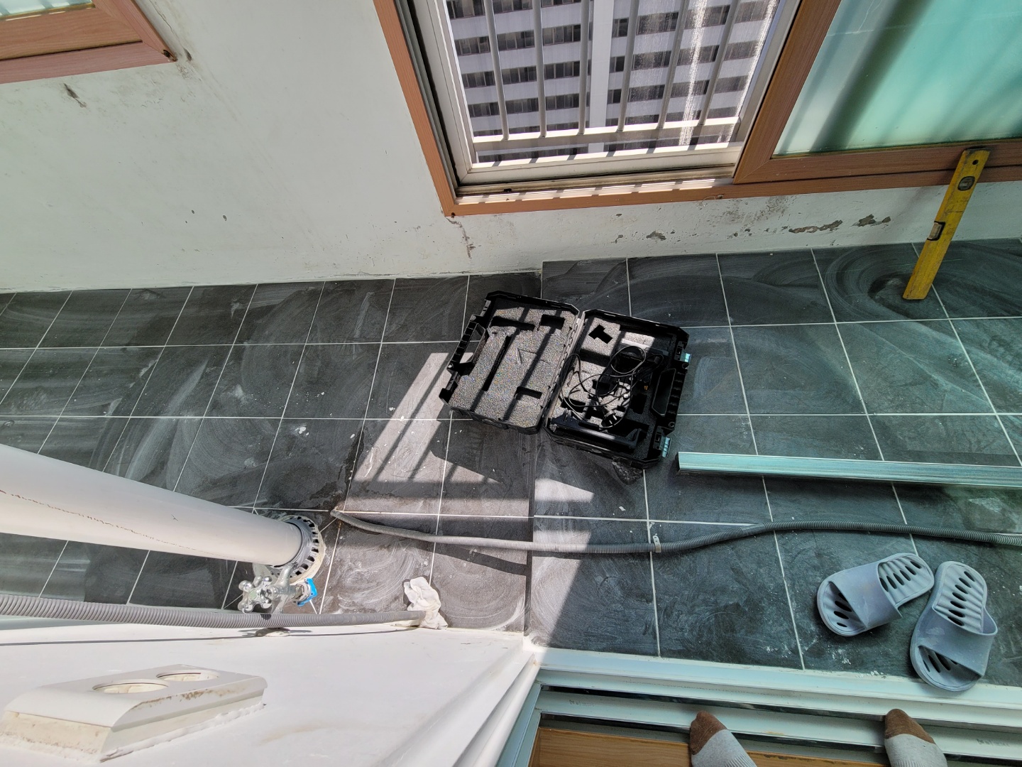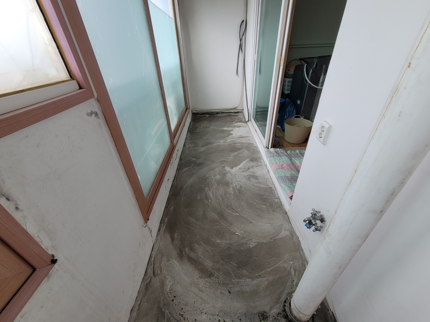 앞베란다의 바닥타일이 철거된 모습입니다. 기계로 부셔서 철거는 해야되네요..