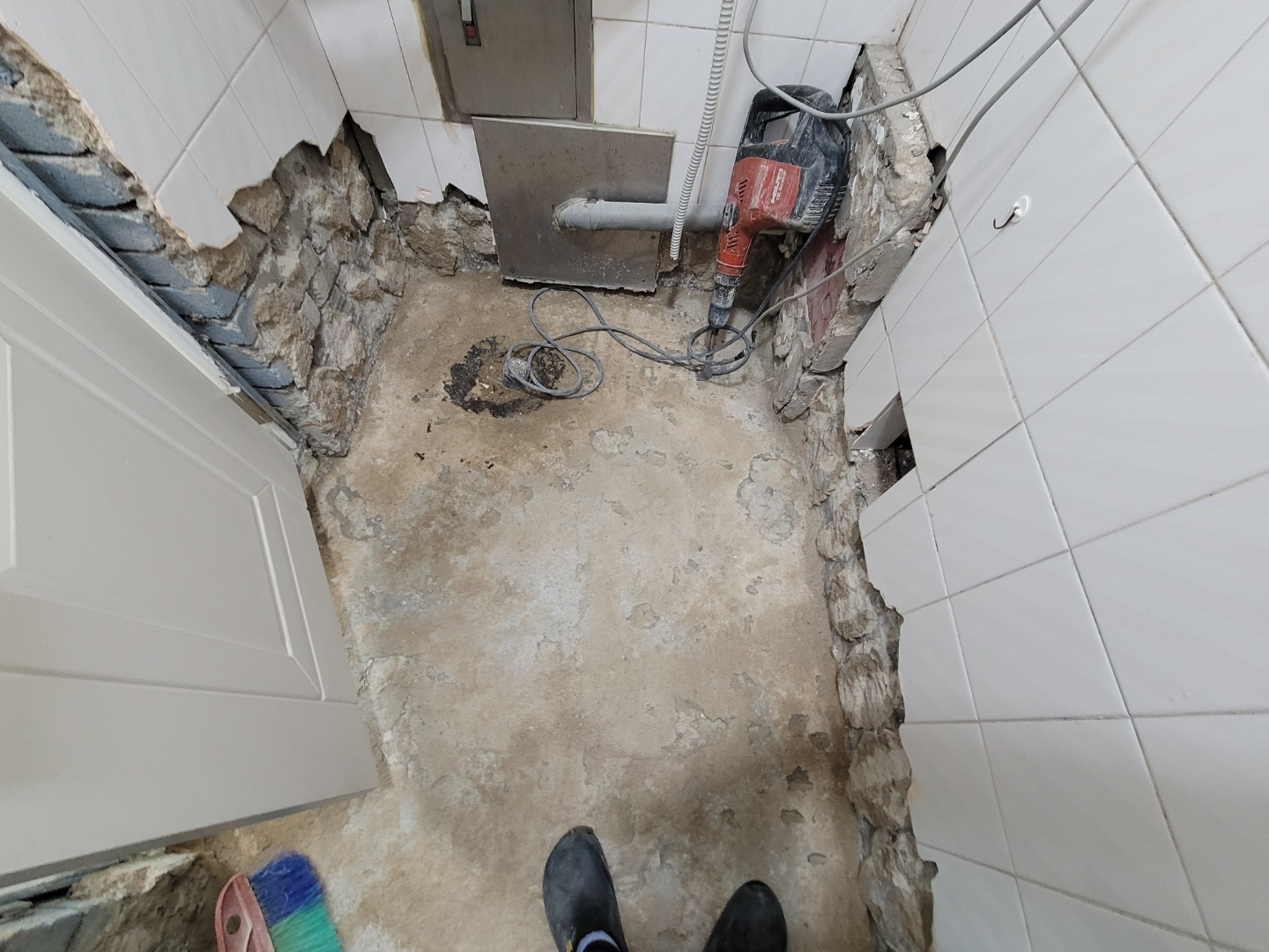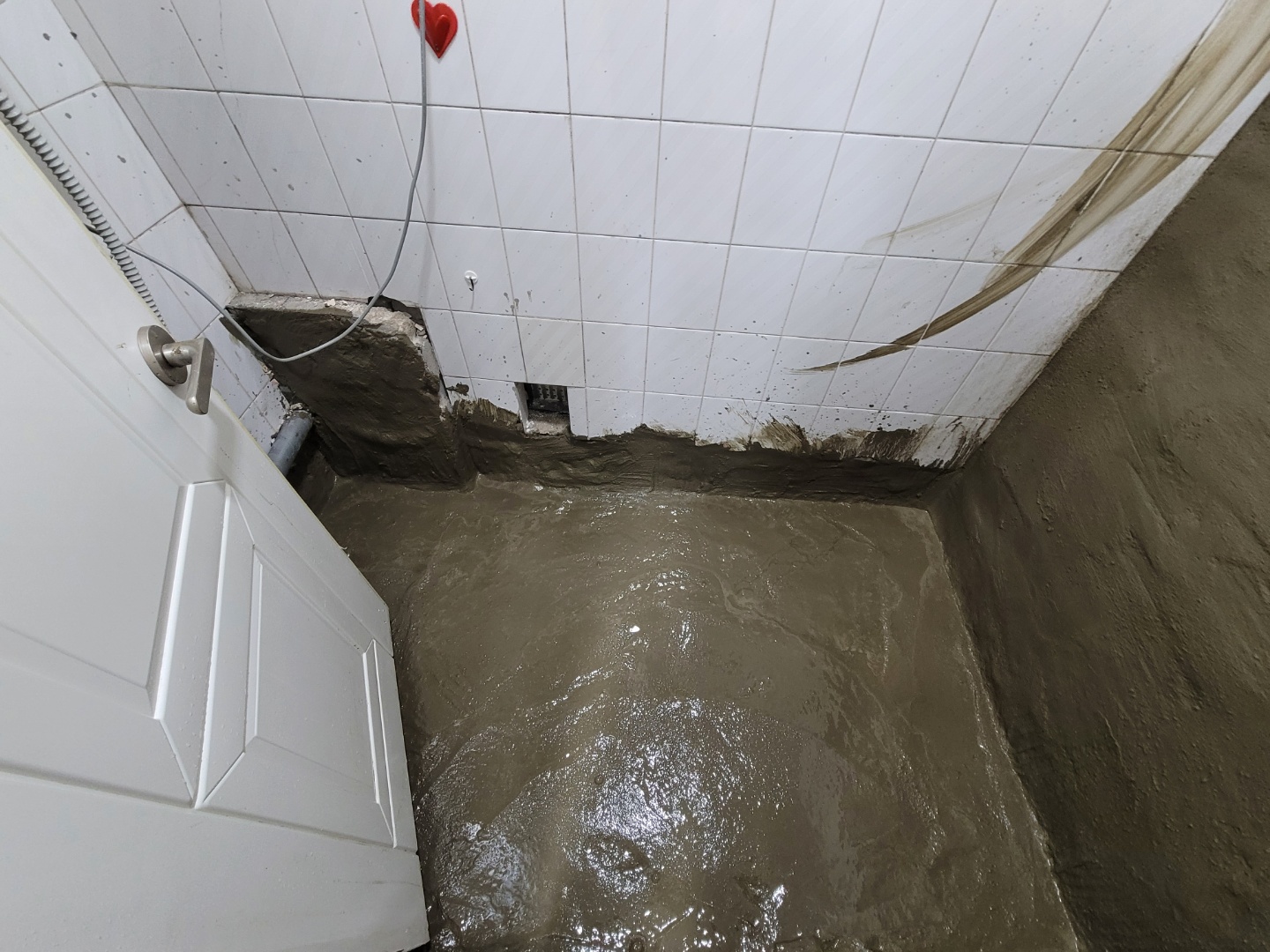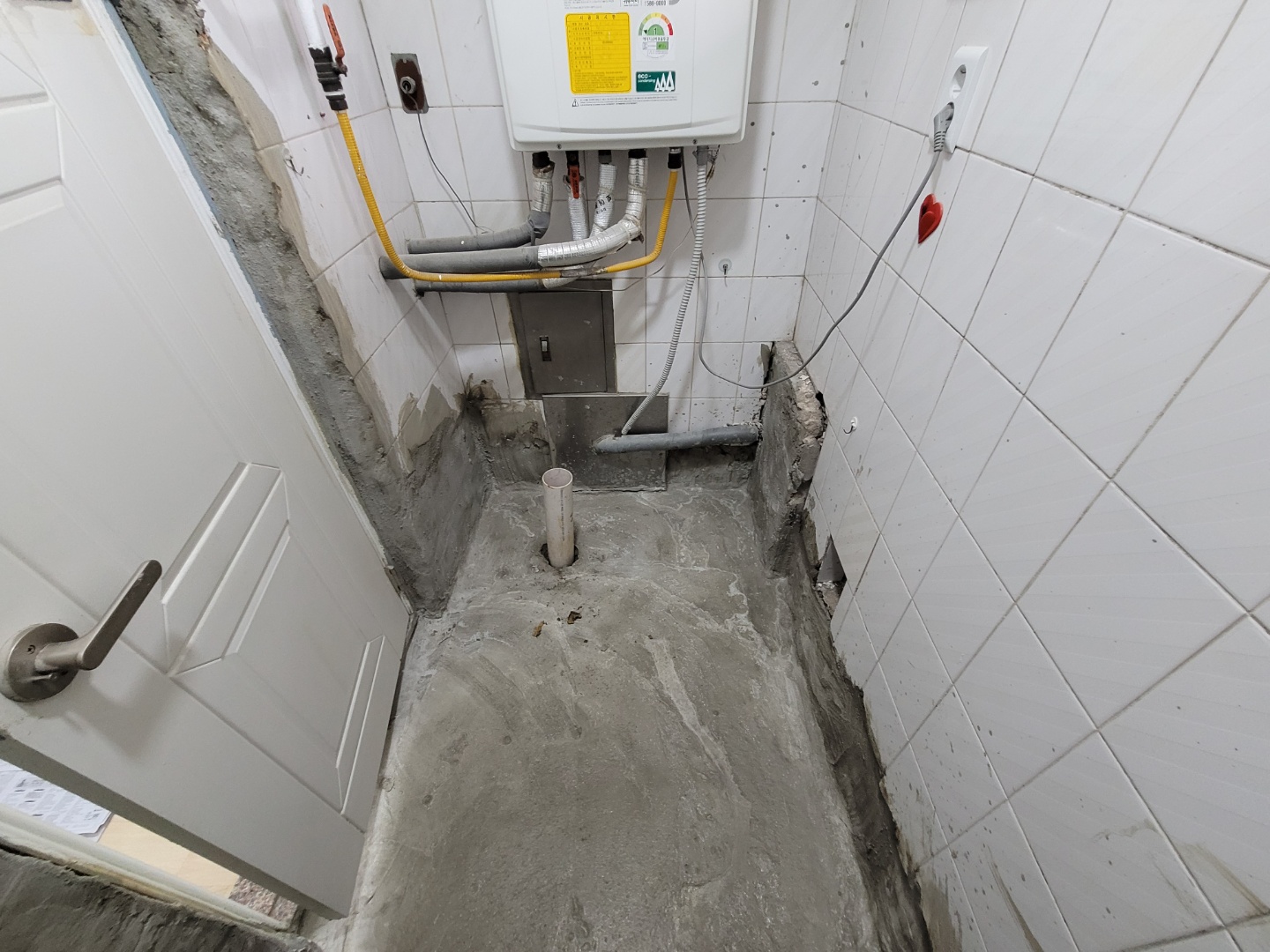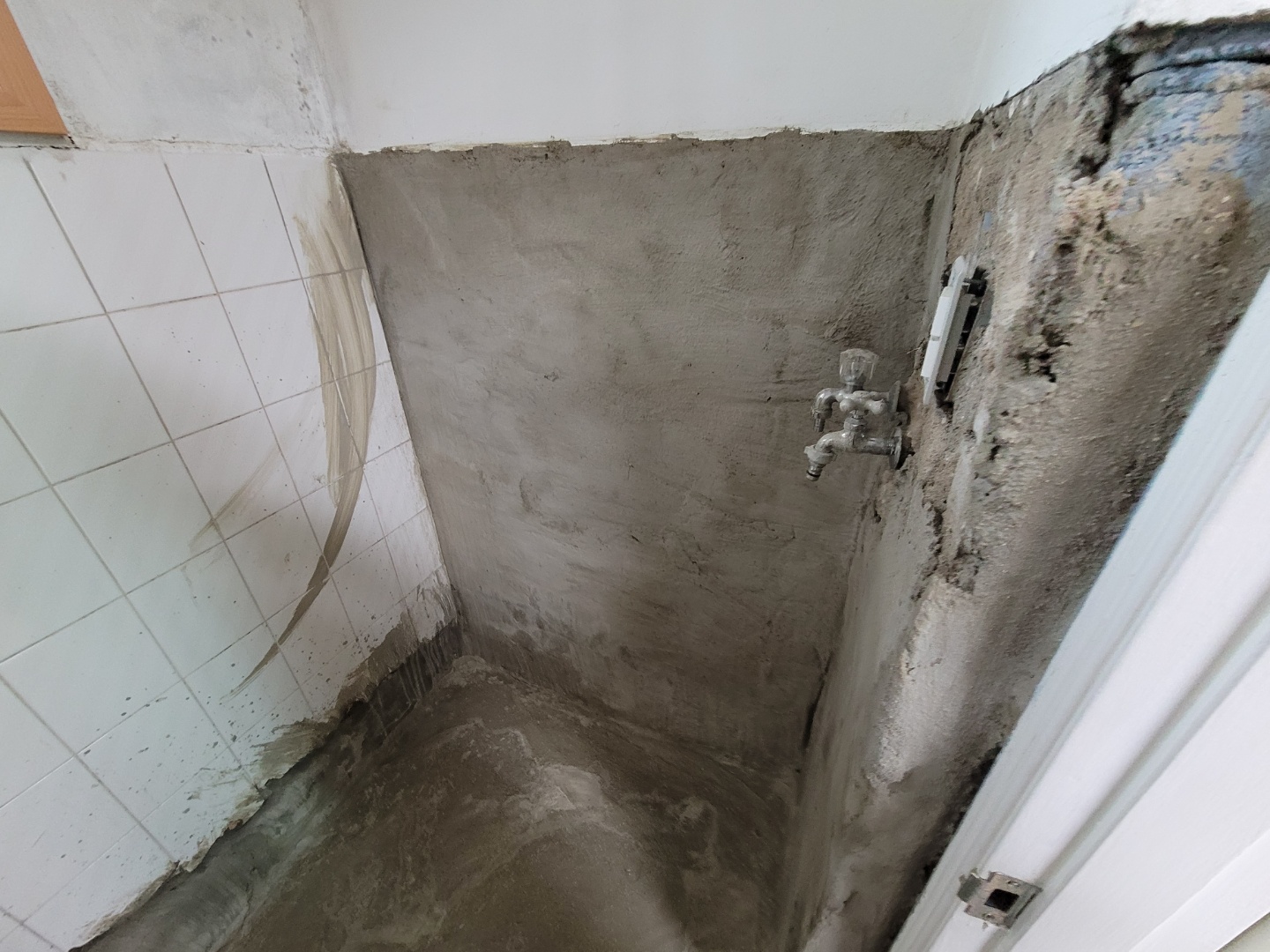 보일러실의 바닥과 벽면 일부타일이 철거된 모습입니다. 이제 여기다가 방수 작업을 해야겠이요..