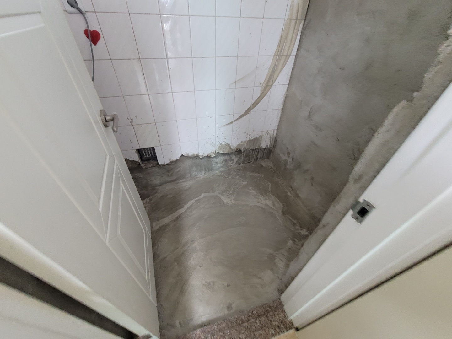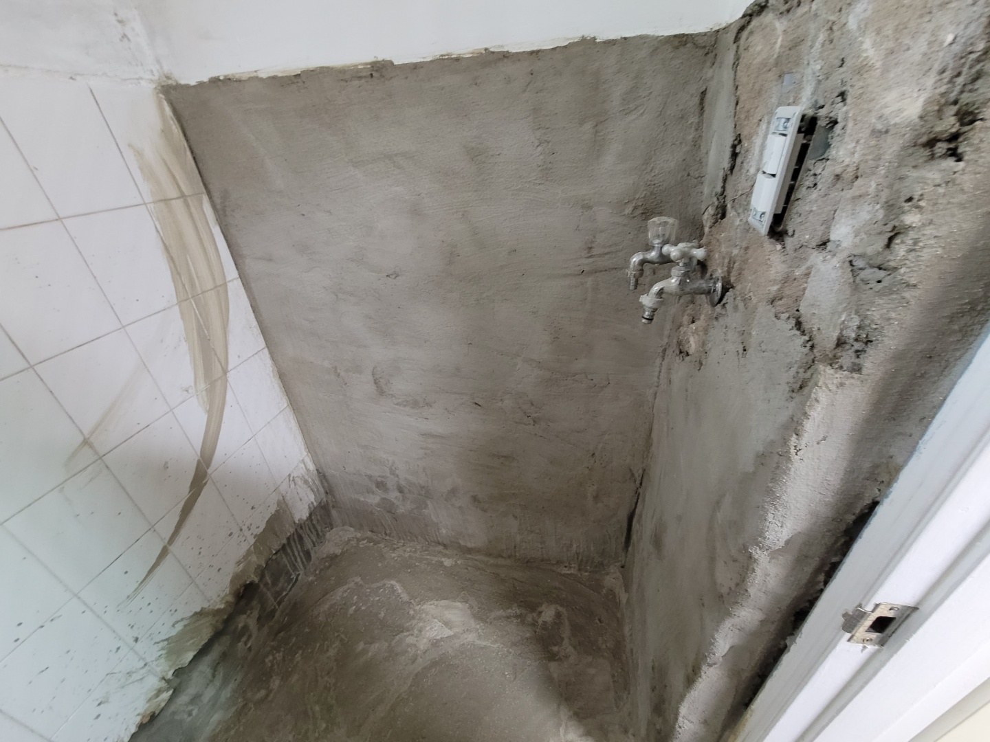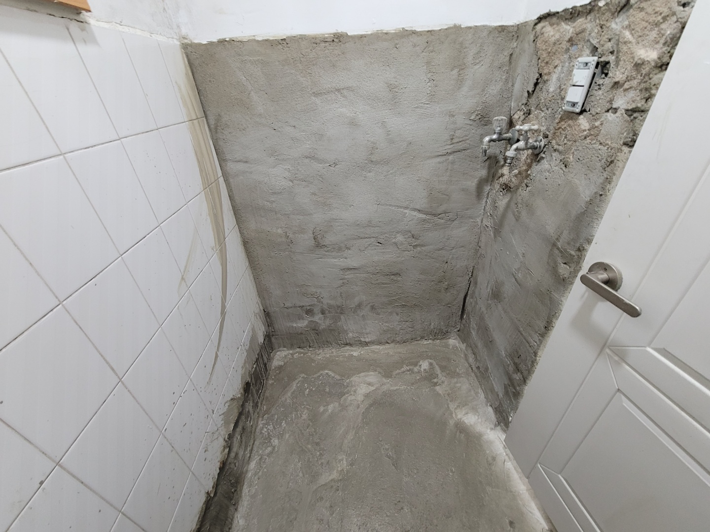 철거후 오후에 이렇게 시멘트 방수작업후 사진을 보내주셨습니다. 여기까지기 첫날에 진행된 작업들입니다.. 이제 시멘트를이 말라야되서 몇일후에서 타일시공 하루 작업을 하면 마무리가 됩니다.
