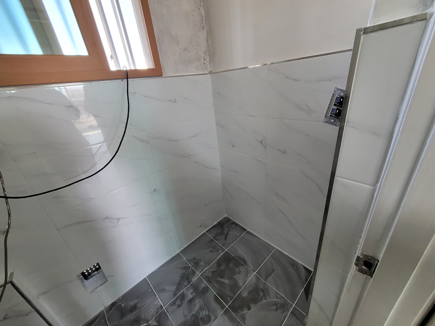 드디어 방수 공사된후 깔끔한 타일로 교체가 된 모습을 보여줍니다. 훨씬 깔끔하네요.. 타일이 없는 기존벽체는 페인트가 까져서 대비되어서 더욱 안타까운 모습입니다. 세입자가 나가시면 다시 이쁘게 페인트칠까지 해줘야 깔끔한 모습이 될걸 같네요..
