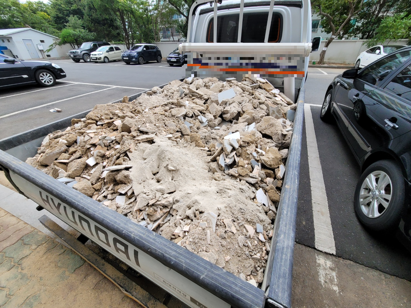 철거된 타일들이 트럭에 가득 실려져 가는 모습입니다. 철거된 양이 제법 많더군요..